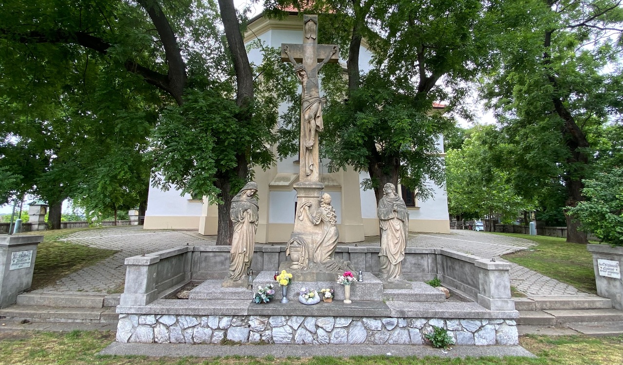 A Kálvária részeként a Keresztút állomásai is megjelennek, melyeket a templom körüli támfalba építettek be, és amelyeket 1937-ben fejezett be Rigele Alajos pozsonyi szobrász. Az egyes állomásokon az adományozók nevei is olvashatók.